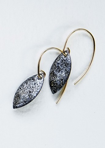 Boucles d'oreilles Gold filled, et navettes résine à effet émaillé à la main, gris métal et paillettes dorées.